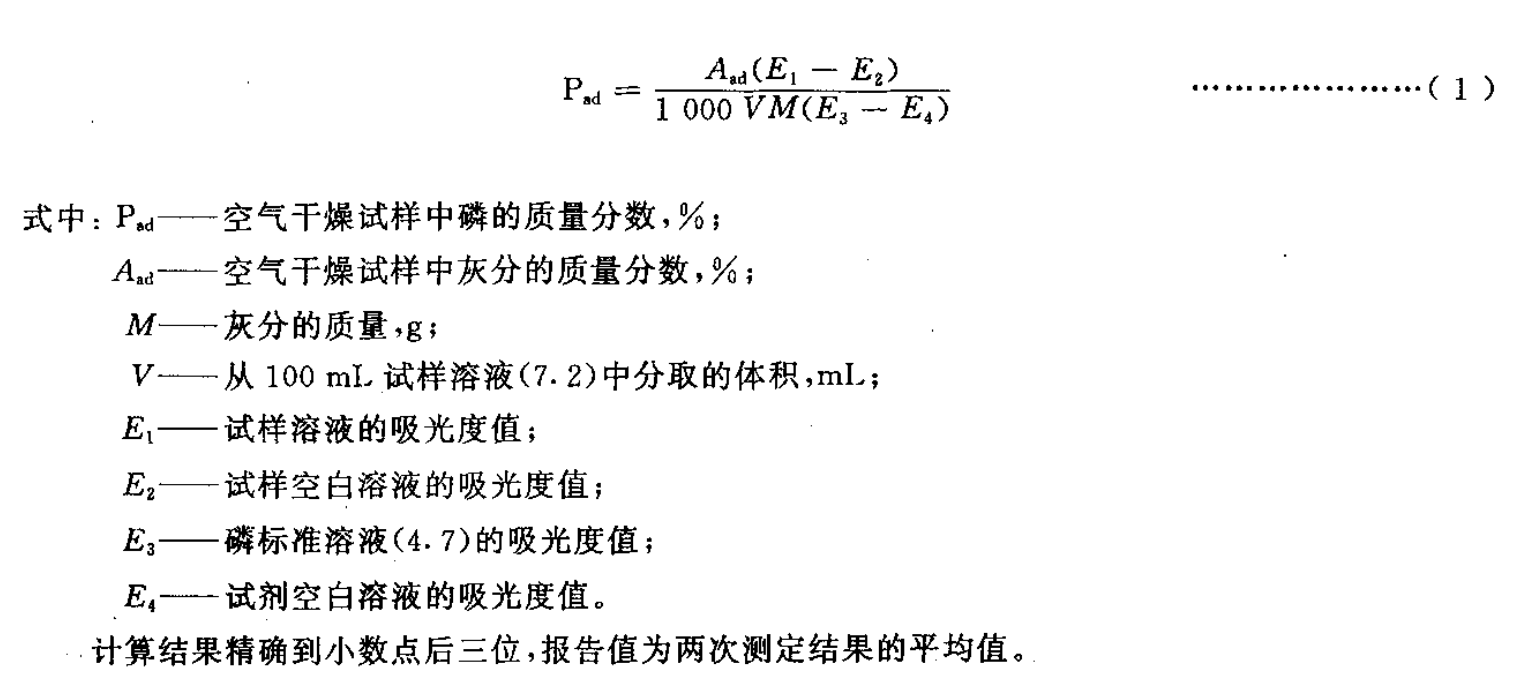 磷的質(zhì)量分?jǐn)?shù)按(1)式計(jì)算: