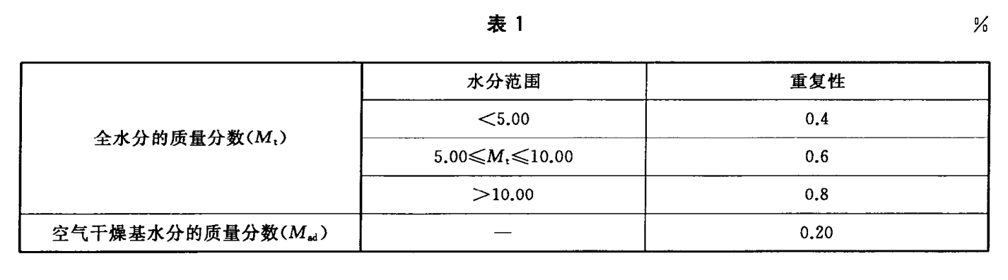 精密度:水分測(cè)定的重復(fù)性,不得超過表1的規(guī)定值